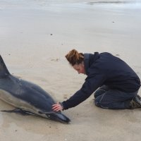 I was called to this dolphin stranding on St Ives beach In early January this year - it had been swimming in circles in the surf with a group of 3 surfers who initially thought it was playing. As it started to try to beach itself the surfers became increasingly worried. After an unsuccessful attempt to refloat it they called in the team at BDMLR to attempt to rescue it. Upon arrival we could see that the dolphin was extremely malnourished and had very labored breath - after a few minutes it sadly passed away. You can tell if a dolphin is malnourished by the indentations along the side of its dorsal fin. The dolphin also had numerous rake markings - usually made by the teeth of other dolphins and it had some rows of teeth missing with some injuries to its pectoral fins. It was then taken away for post mortem.
